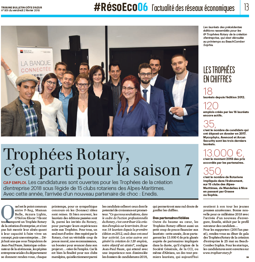 Depuis 2012, les Trophèes Rotary de la création d'entreprises ont vu reconnaître 36 lauréats. Ils font notre fierté et ont déjà créé près de 250 emplois.